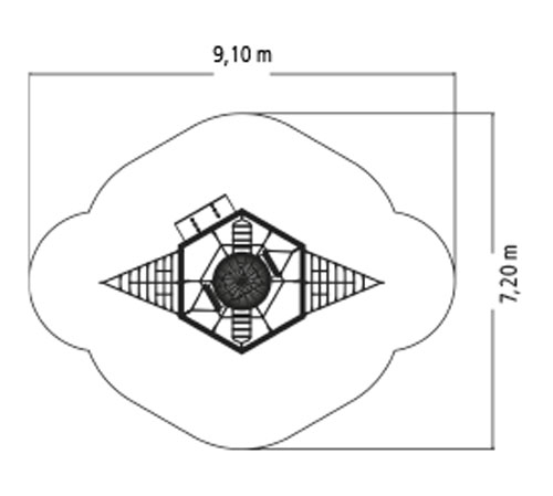 - 6-Eck-Rahmen-Konstruktion mit 6 Standpfosten aus Stahl (Ø 102 mm), feuerverzinkt, Länge 3,00 m, mit Abdeckkappen, Spezialfarbe (blau) zum Streichen im Lieferumfang