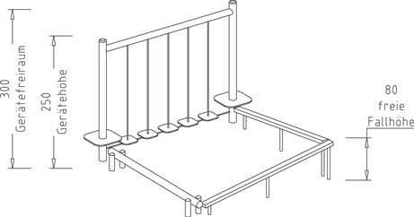 Seile am Längsbalken beweglich befestigt, horizontales Seil Ø 22 mm, 2 Plattformen