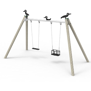 Pfosten aus Kiefernschichtholz. Um die Stärke und Beständigkeit zu garantieren, werden sämtliche Holzspielgeräte aus 5-schichtigem, skandinavischem Kiefernholz in Resistenzklasse GL24 hergestellt. Das Holz wird Autoklav-Schutzklasse IV behandelt, gemässe der Norm EN351/EN335. PEFC- und FSC-zertifiziert.