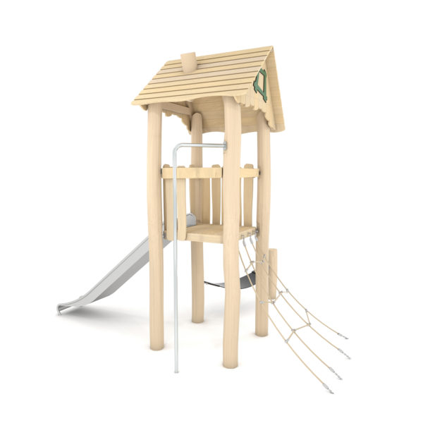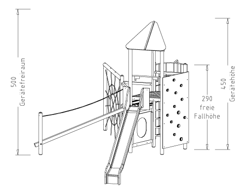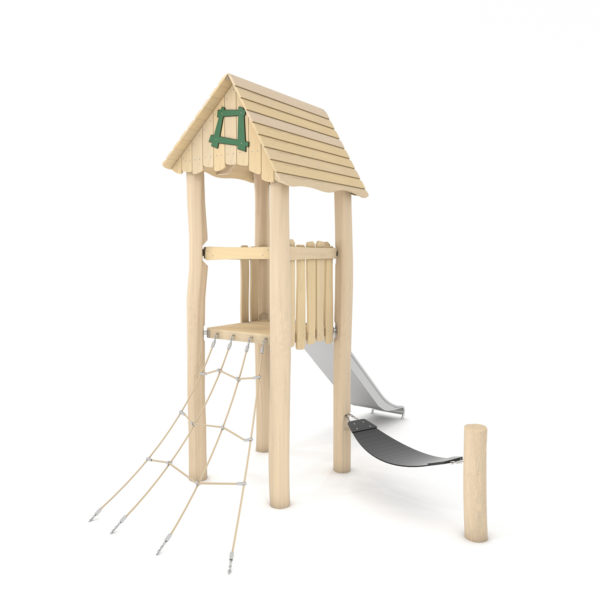 1 Zwischenleiter, 1 Pultdach, 1 Bergsteigerwand, senkrecht, 1 U-Kletternetz,
