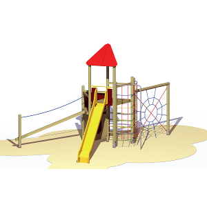 – Steg – Dschungelhütte – Rutsche – Kletternetz – Kletternetz mit Figuren –