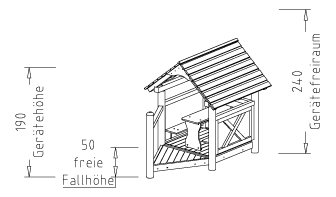 Siebdruckplatte, 1 Tisch, 1 Giebeldach.